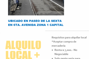 | Dirección: | Guatemala, Ciudad De Guatemala, Zona 1, 6ta. avenida ref. paseo la sexta zona 1 |