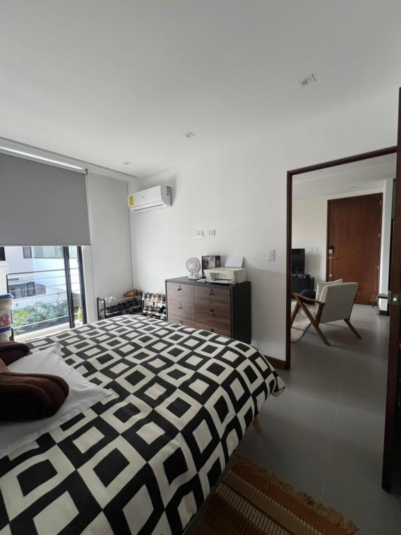 - Sala de estar con acceso a un pequeño balcón, ideal para aprovechar la luz natural y disfrutar de las vistas.