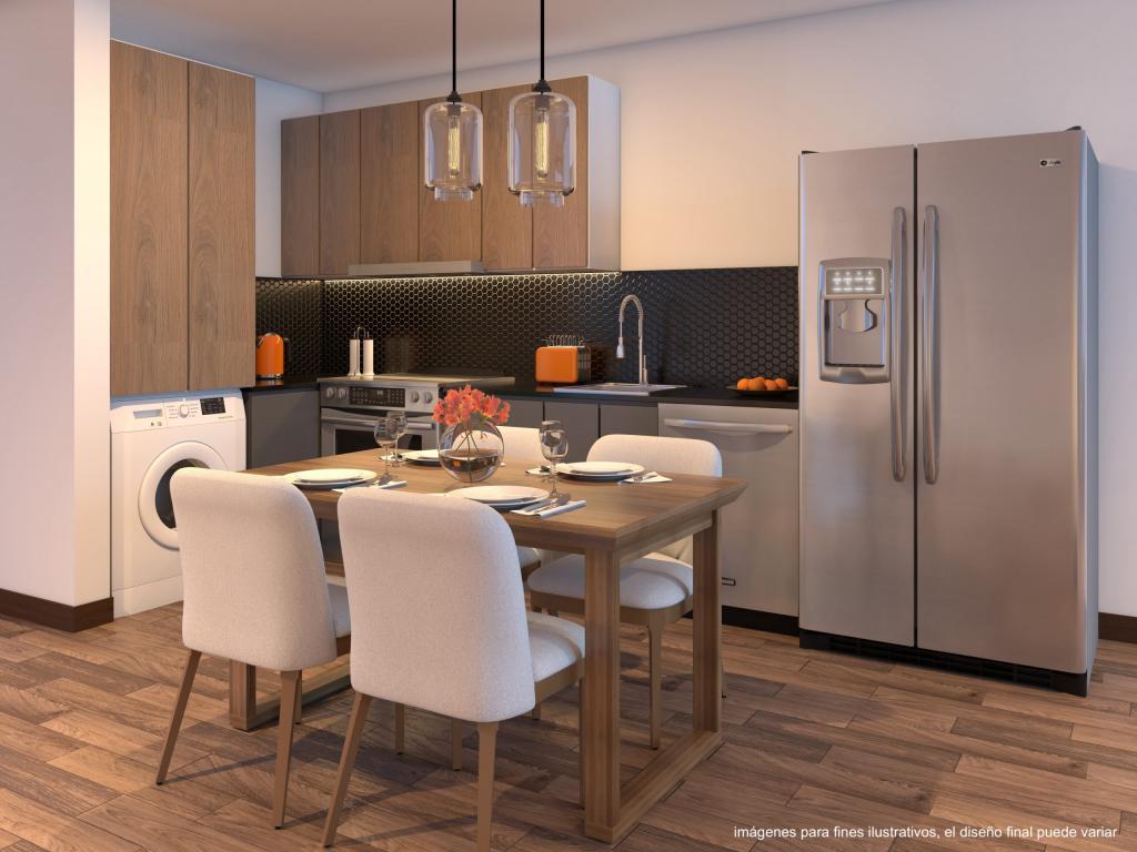 - **Cocina moderna y totalmente equipada**, diseñada para facilitar la preparación de alimentos y optimizar espacios.