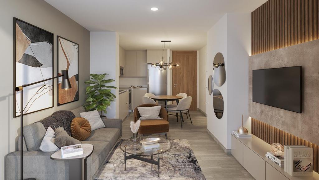 - **Diseño interior:** Sala, comedor y cocina integrados en un concepto abierto, creando un ambiente moderno y funcional.