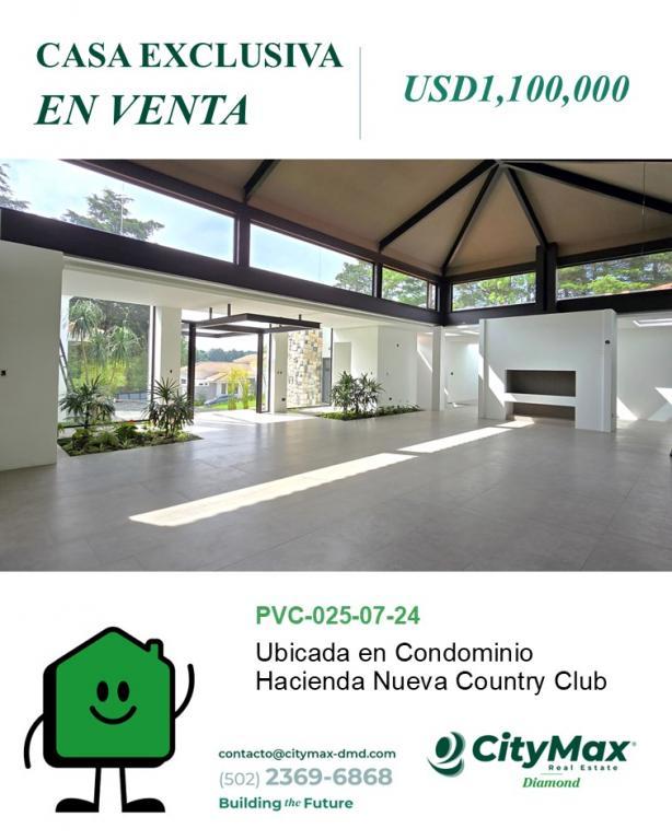En Condominio Hacienda Nueva Country Club, venden exclusiva Casa, 840 m2. Inversionistas la ubican en San José Pinula, Guatemala