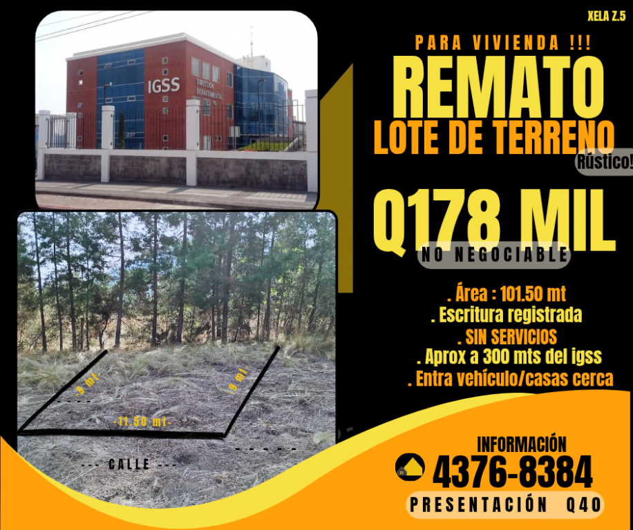 Oportunidad de inversión en Xela. Terreno en remate, ubicado en la zona 5, con excelente accesibilidad y potencial de desarrollo.