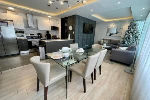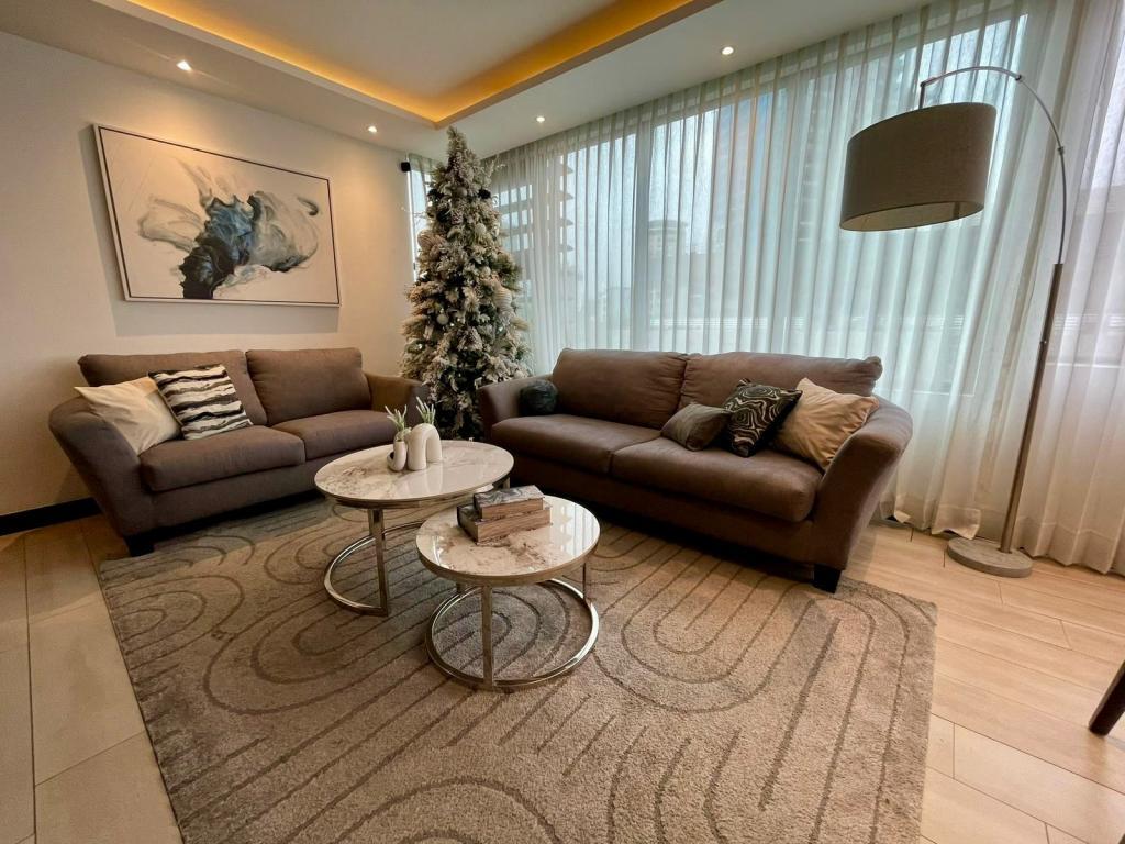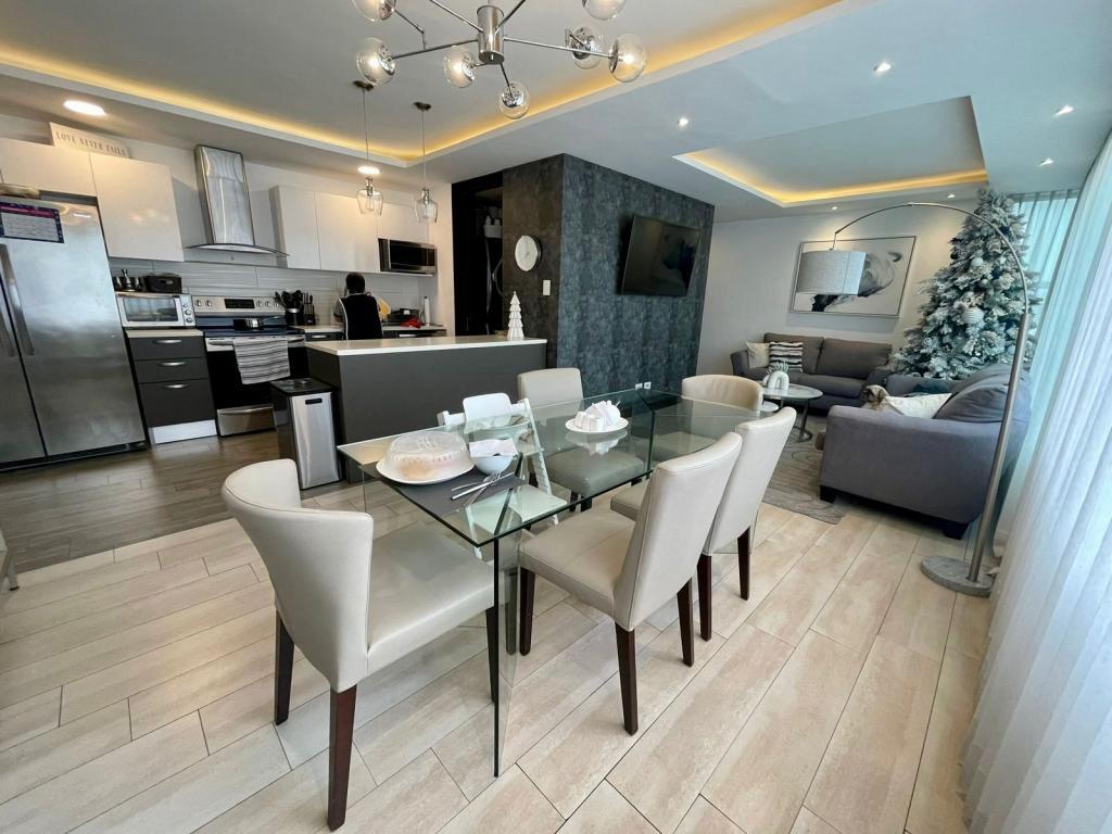 - Cocina equipada con línea blanca completa, incluyendo refrigerador, estufa, horno, extractor de olores, lavadora de platos, además de una práctica lavandería.